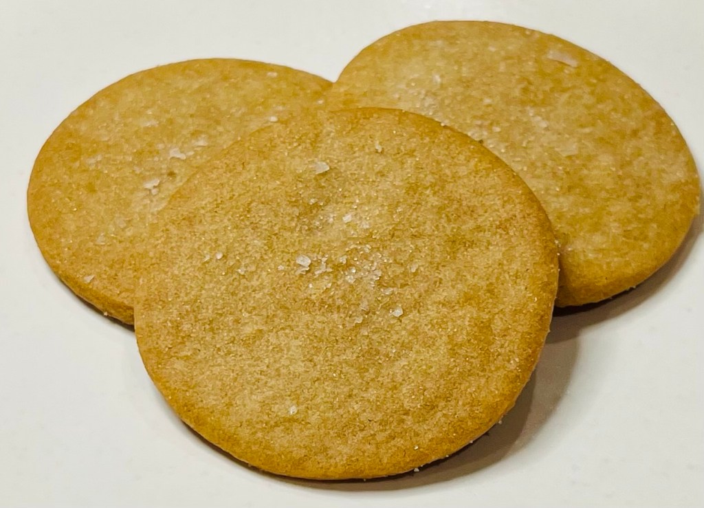 Look at that perfect little circle, with just a dash of sugar and smoked salt on top! How fun is that? Oh! It looks like a slightly cooler version of a ginger snap you say? Well, that’s fair, it kind of does. But, this little gem of a cookie is sweet and a nice blend of crispy and chewy with a prominent smoke flavor. The use of liquid smoke was new for me in a cookie, as was the sprinkling of smoked salt on top, and it turned out really nice.
